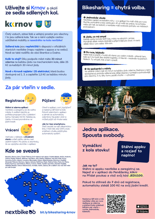 Na webu  Nextbike i v mobilní aplikaci jsou již zobrazeny všechny stanice sdílených kol v Krnově, Branticích a Úvalně.